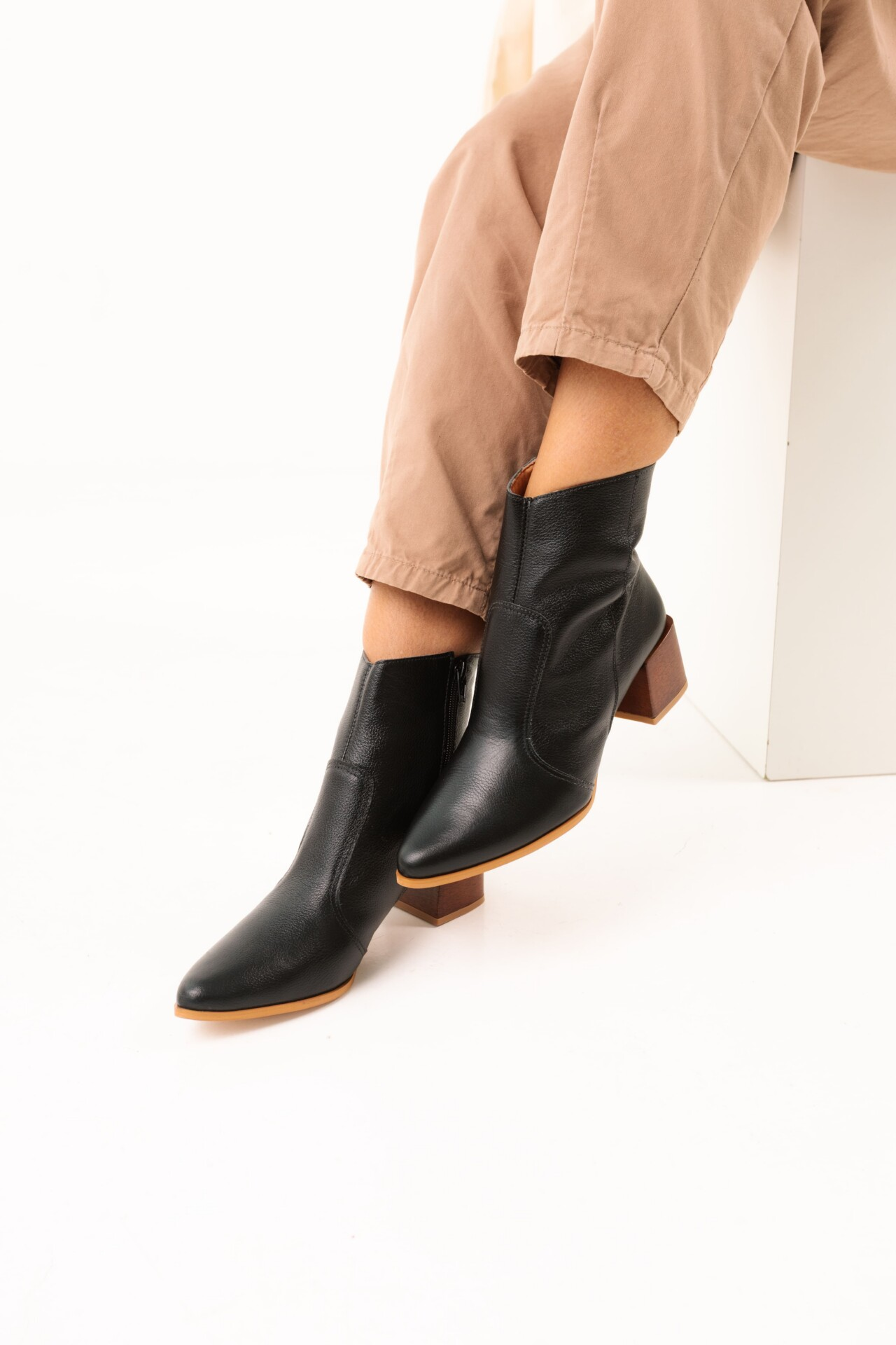A Bota Cano Médio em Couro Margot apresenta uma leitura contemporânea da bota clássica, com linhas limpas e estrutura precisa que valorizam a silhueta do pé. O design minimalista ganha destaque pelo acabamento sofisticado e pelo brilho do couro, criando uma peça elegante com presença marcante. Confeccionada em couro de alta qualidade, a bota oferece conforto e durabilidade no uso diário. O cano médio aliado ao salto em madeira proporciona estabilidade e versatilidade, enquanto o fechamento lateral facilita o calce. Um modelo pensado para composições que transitam com naturalidade entre o urbano e o refinado.