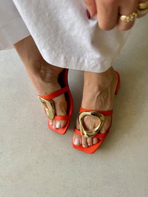 Elegância moderna em versão minimalista. A Rasteira Feminina em Couro Mistié feita em couro nobre, com aplicação metálica em formato orgânico sobre tiras finas que abraçam o pé com delicadeza. O design conta com bico quadrado e salto baixo geométrico, garantindo conforto e sofisticação no dia a dia.