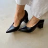 O bico fino alonga visualmente as pernas, enquanto o salto médio bloco garante estabilidade e conforto para uso prolongado, tornando o modelo ideal tanto para a rotina profissional quanto para ocasiões especiais. Seu formato anatômico proporciona encaixe perfeito aos pés, unindo estética refinada e funcionalidade.