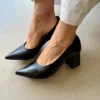 O bico fino alonga visualmente as pernas, enquanto o salto médio bloco garante estabilidade e conforto para uso prolongado, tornando o modelo ideal tanto para a rotina profissional quanto para ocasiões especiais. Seu formato anatômico proporciona encaixe perfeito aos pés, unindo estética refinada e funcionalidade.