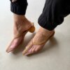 Seu cabedal combina couro nobre com tela transparente em delicado efeito geométrico, proporcionando frescor e modernidade ao design. O salto em madeira arredondado, traz autenticidade e equilíbrio perfeito entre arte e conforto. Um modelo versátil, pensado para elevar produções diurnas e noturnas com um toque de ousadia sutil e elegância atemporal.