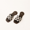 Um clássico que une arte e design. A Rasteira Feminina em Couro Artemis celebra a estética do xadrez de forma elegante, com tiras largas confeccionadas em couro nobre entrelaçado nos tons preto e off-white, criando um visual marcante, sofisticado e atemporal.