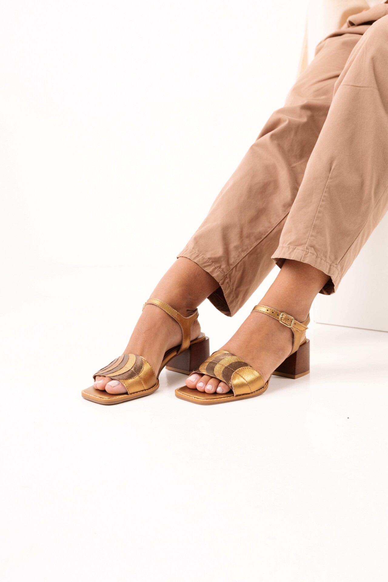 A Sandália em Couro e Salto Madeira Foglia se destaca pelo design orgânico e pelo trabalho de sobreposição no cabedal, que cria movimento e profundidade visual inspirados em formas naturais. O resultado é uma sandália que equilibra delicadeza e presença, trazendo um elemento de design marcante sem perder a elegância.