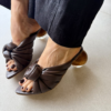 A Tamanco Salto Madeira Cherie traz delicadeza e sofisticação. Confeccionada artesanalmente em couro nobre, apresenta tiras largas tramadas em nó central, criando um efeito escultural e ao mesmo tempo macio, que envolve o pé com charme. O bico levemente alongado reforça a elegância, enquanto o salto arredondado em madeira, adiciona identidade e equilíbrio entre conforto e design autoral.