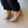 O salto bloco médio garante estabilidade e conforto para o uso prolongado, enquanto o design slingback com tira ajustável valoriza o calce e facilita a adaptação aos pés. Perfeito para produções versáteis, do office look ao jantar especial.